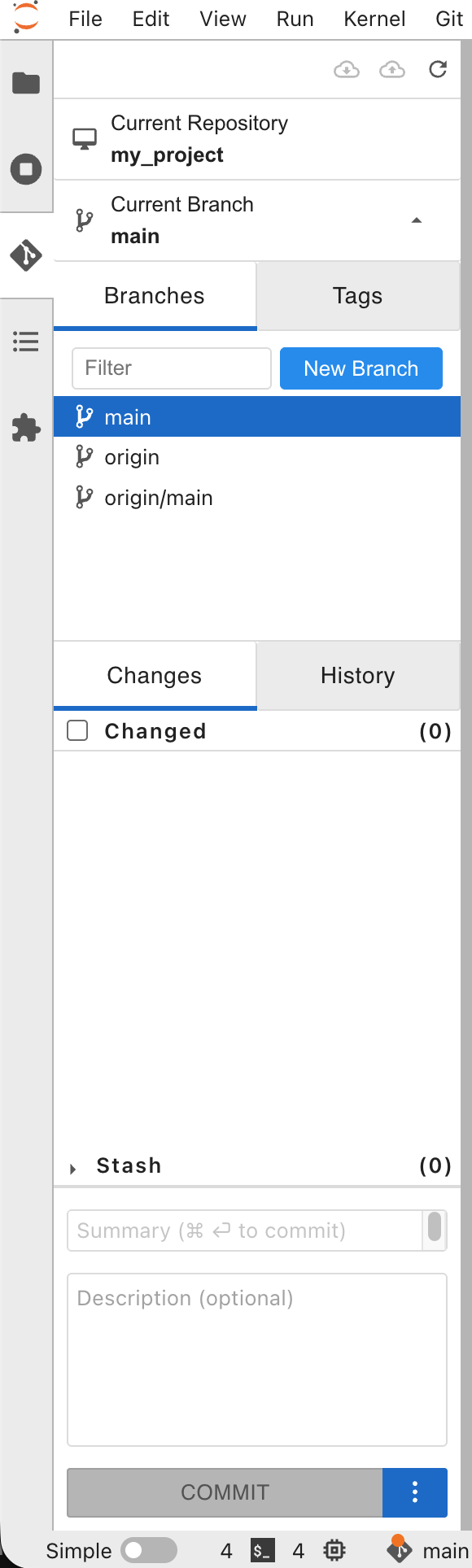 In JupyterHub (Git sidebar)