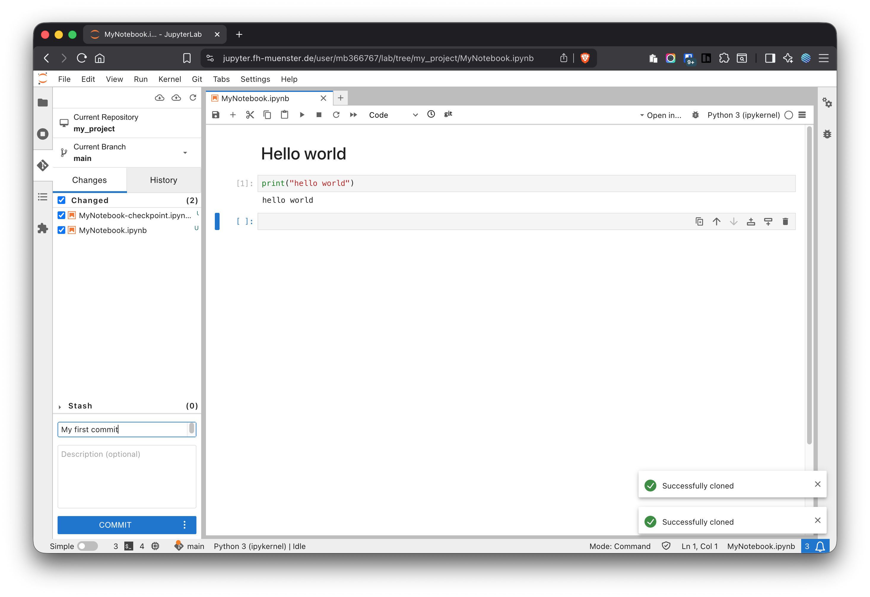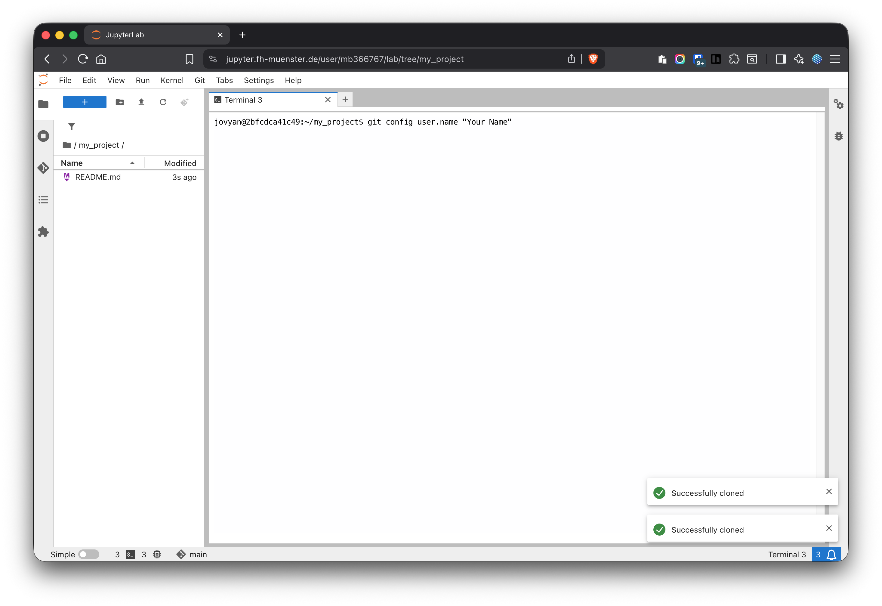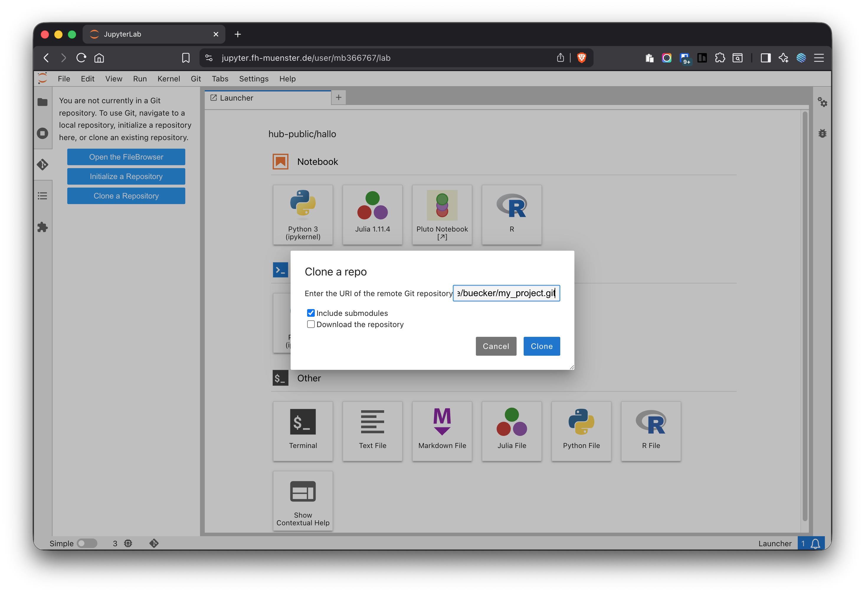 Figure 12: Cloning a repository with JupyterHub