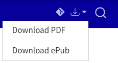 Die Web-Version des Skripts ist verfügbar unter https://datascience.fh-muenster.io/programming-in-r. Die PDF und EPUB Versionen können auf dieser Webseite über den Download-Button heruntergeladen werden (siehe Abbildung 1).