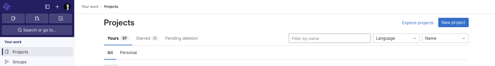 Um das FH GitLab für die Verwaltung von R Code in RStudio bzw. der Posit Workbench zu verwenden, sollte zunächst ein entsprechendes Projekt in GitLab erzeugt werden. Hierzu kann auf der Startseite (vgl. Abbildung 1) ein neues Projekt per Klick erstellt werden.