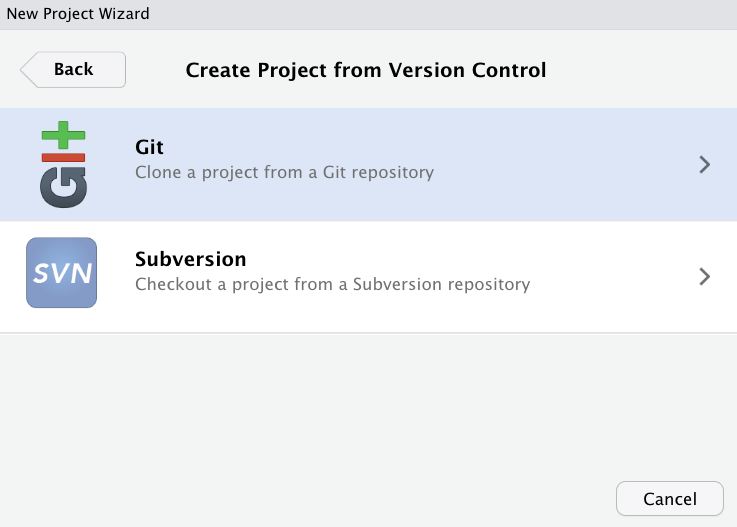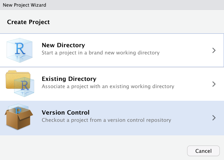 Ein Projekt lässt sich von allen Mitgliedern klonen. Zum Klonen des GitLab Projekts in RStudio bzw. der Posit Workbench, muss hier ein neues Projekt erstellt werden. Hierzu wird bei der Erstellung des neuen Projekts als Quelle “Version Control” ausgewählt (vgl. Abbildung 8).