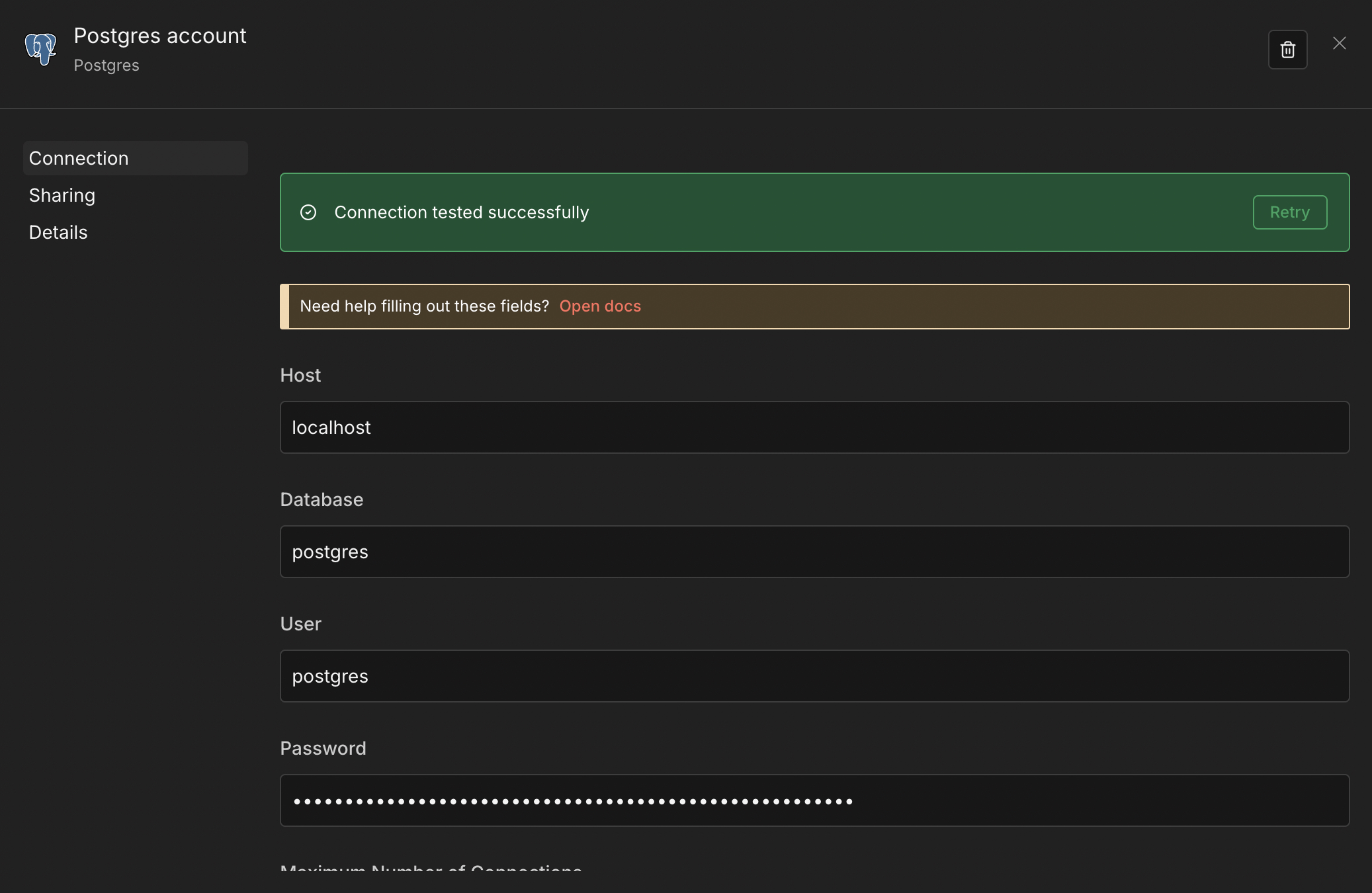 Erstellen Sie in n8n neue Postgres-Credentials und verwenden Sie: