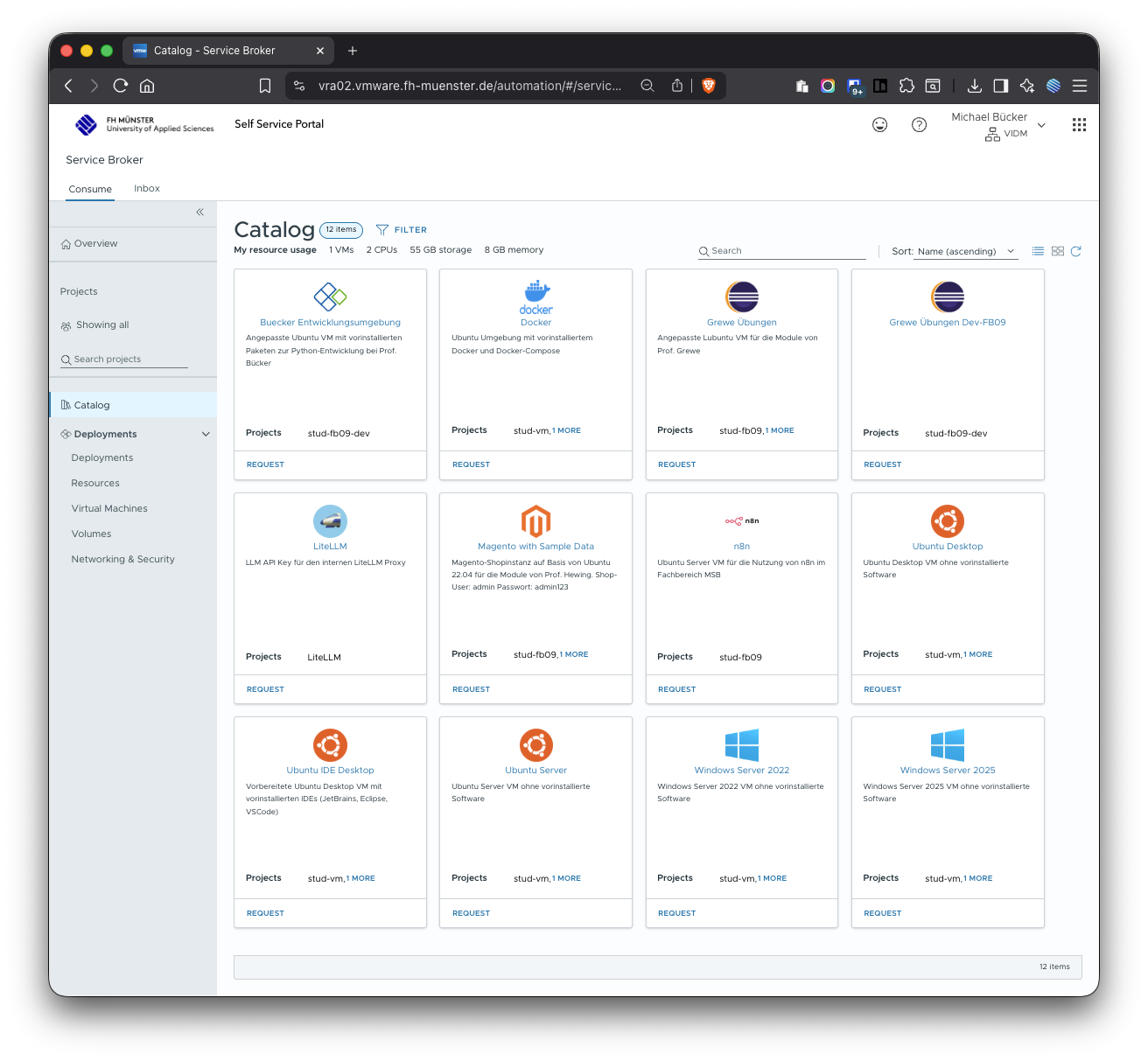 VMware vRealize Automation (vRA)Melden Sie sich mit Ihren FH-Zugangsdaten an.
